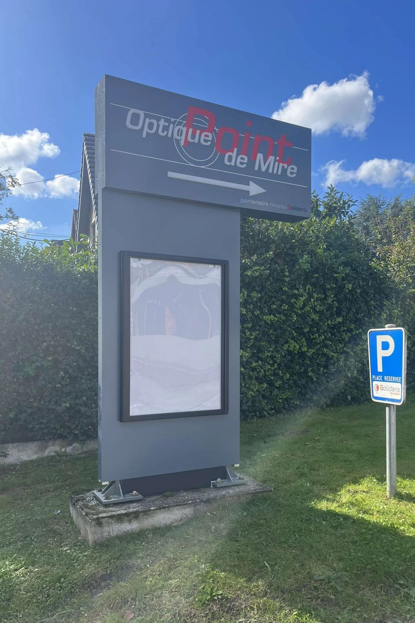 Le StandBox Classic présente un design sobre et élégant, aucune cornière de finition ne vient alourdir le pourtour du totem. Afin d’affiner le visuel il est possible d’associer ce totem avec des lettres de façade. Il est également disponible en ajouré lumineux. Possibilité d’y intégrer une boîte aux lettres.